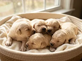 Zaplanowaliśmy miot E – połączenie naszego czempiona Ariona Golden Star z piękną Bellą Rose. Oboje mają doskonałe wyniki badań zdrowotnych i świetne temperamenty.