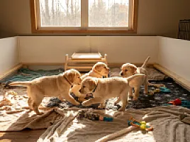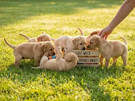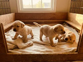 Szczeniaki są coraz bardziej aktywne i zabawne! Biegają po kojcu, walczą ze sobą i bawią się zabawkami. Osobowości zaczynają się wyraźnie zarysowywać.