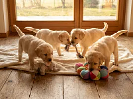 Nasz miot E to połączenie doskonałych linii hodowlanych. Ojciec – Champion Polski Arion Golden Star – wnosi świetną budowę i łagodny temperament. Matka – Bella Rose – to czuła i opiekuńcza suka z idealnym charakterem.