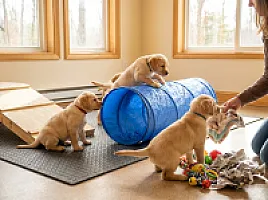 Szczenięta są socjalizowane od pierwszych dni życia, przyzwyczajane do różnych dźwięków, powierzchni i kontaktu z ludźmi.